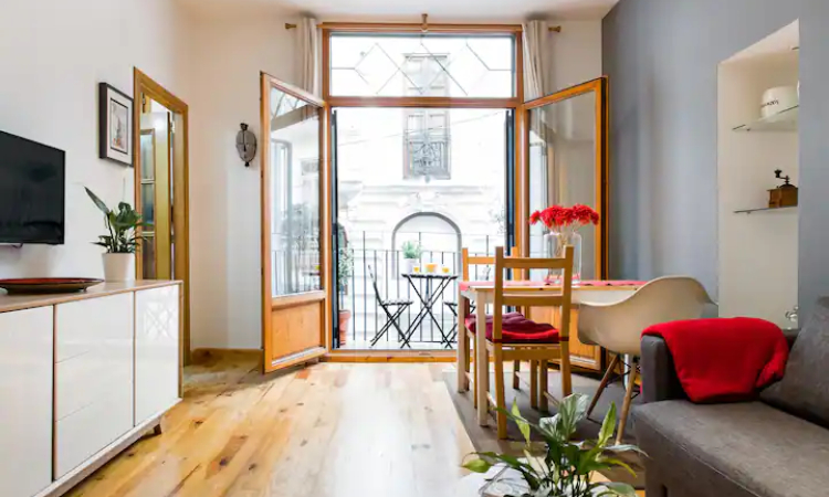 Er is een mooie eethoek in het midden van de studio, ideaal om van maaltijden te genieten. De keuken is voorzien van alle benodigdheden om uw favoriete gerechten te bereiden, waaronder potten, pannen, bestek en een fornuis. Je vindt er alles wat je nodig hebt om ontbijt, lunch of diner te bereiden. De ruime woonkamer is voorzien van twee comfortabele banken die kunnen worden omgebouwd tot bedden voor gasten.